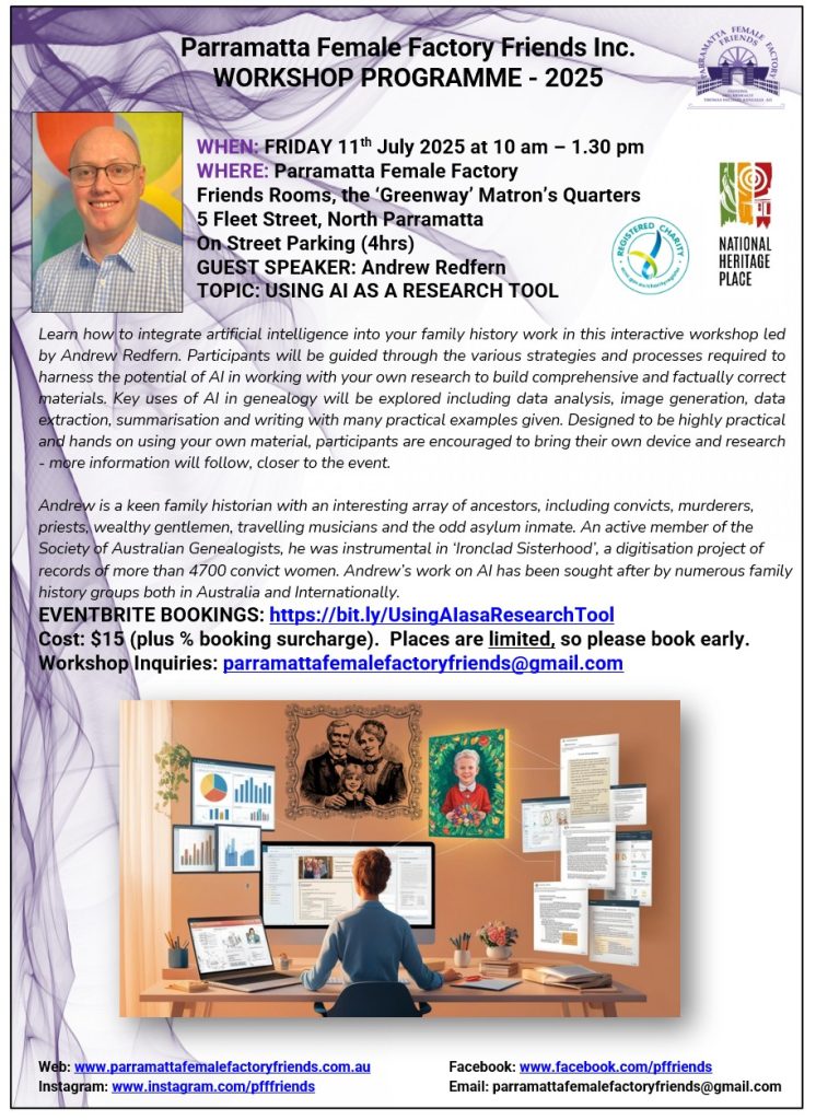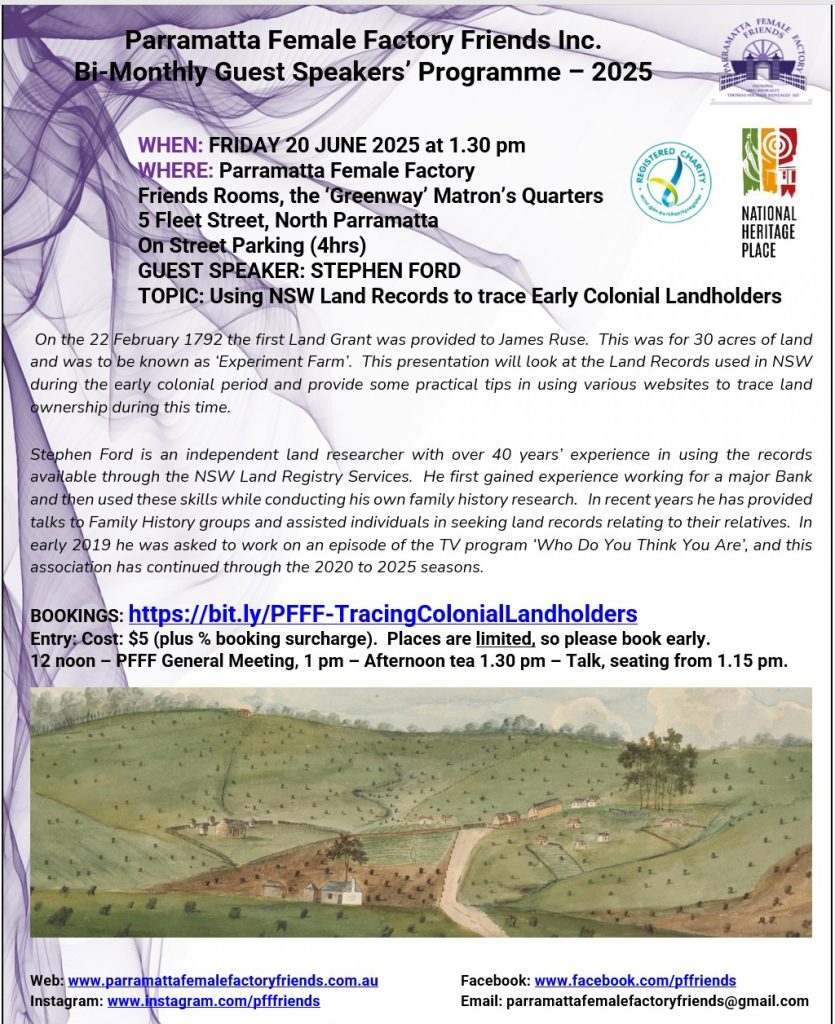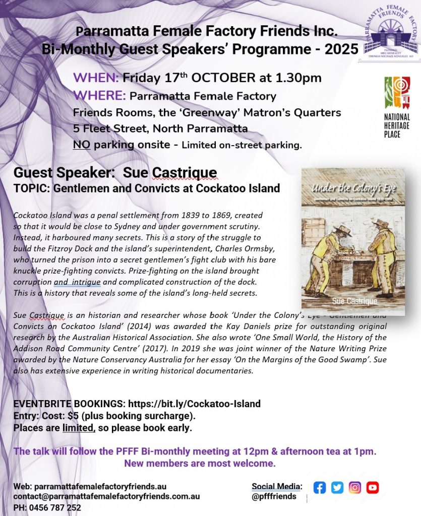 Our members are available to give talks to community organisations, schools, and historical groups on a range of topics relating to the Parramatta Female Factory, the broader Female Factory system, and connected histories.