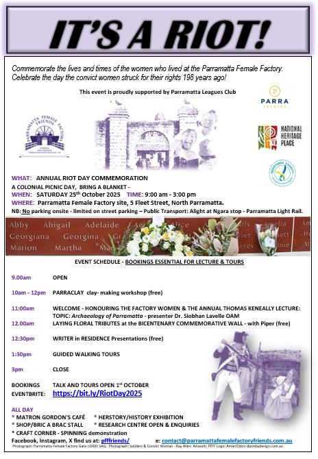 “It’s a Riot” Day is the highlight of our year—a celebration of heritage, community, and the enduring spirit of the Parramatta Female Factory women.